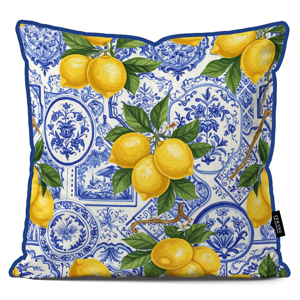 کاور کوسن پردیس طرح کاشی قلم آبی و شاخه لیمو، در رنگ های آبی-سفید-زرد تولید میشود. این کوسن زیبا شامل طرح های گلدان, گل آبی, قلم آبی, آنتیک, لیمو، بوده و مناسب کاناپه, مبل راحتی, مبل چستر و ... می باشد.